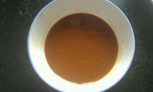 将两勺酱油 一勺蚝油 一勺淀粉 半勺白糖 一茶勺盐 五勺清水调成汁