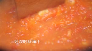 蕃茄入锅炒,炒到浓汁可以再加入蕃茄沙司,一起炒。