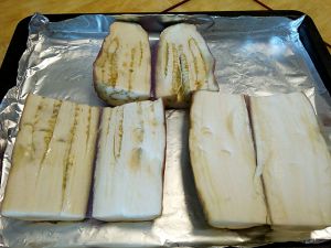 烤箱预热200度,把蒸好的茄子放进烤盘里,烤十分钟。这个步骤我是没有添加任何东西的。