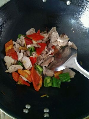 加入瘦肉翻炒,瘦肉我用酱油伴好的,这样炒出来的肉质鲜嫩,爆炒一下盛出来