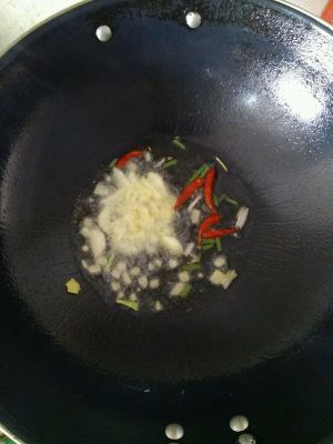 锅热好,加入一点点油,加入肥肉,把肥肉的油煎出2/3,加入瘦肉,翻炒,加入盐,蚝油,一半蒜子,翻炒,炒至肉熟,出锅!锅内剩的油用来炒辣椒啦~