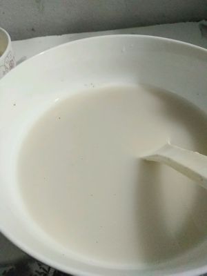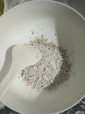 趁水还没烧开,调芡汁,红薯粉与清水调和。红薯粉尽量多点。