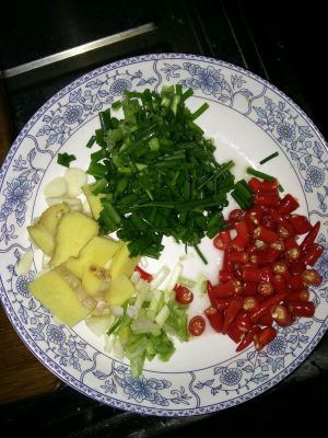 姜蒜辣椒切好