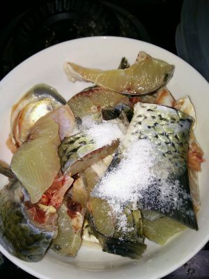 草鱼洗净放盐腌一下。