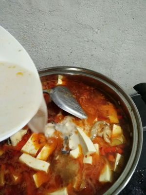 水烧开后放入洗干净的鱼,还有豆腐。