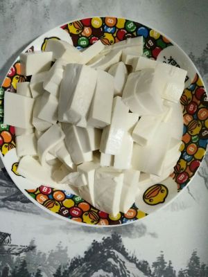 豆腐切小块,当然你也可以切大块或者不切都随你开心