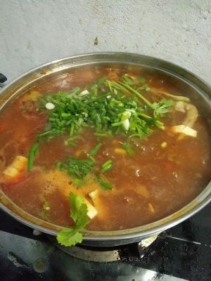 煮至感觉水变浓稠后放入葱花和香菜。