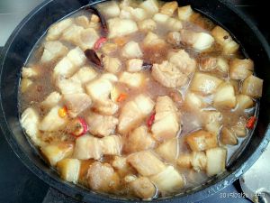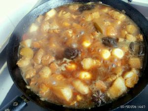 继续加老抽生抽和蚝油,炒出酱香。转入砂锅,一次性加足够热水。开锅后保持小火。
