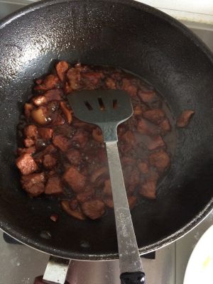 放料酒 老抽 加少许醋去腥 翻炒 少许白糖 加入豆腐乳