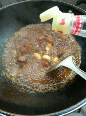 爆到酱油收汁,加入八角和少量料酒