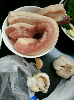 两位主角,大蒜子和五花肉。五花肉建议大家买带皮这种,口感更好。