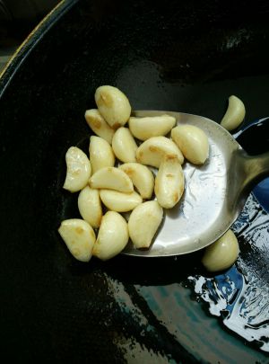 锅里少许油烧热,放入所有蒜子。