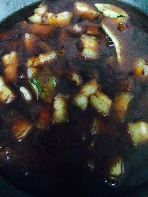 加水淹没过肉,加入冰糖、剩下的香叶,酱油,少许红曲粉(红曲粉的好处可多了,可以百度)大火煮到收汁,尝下味道,自行调节下~