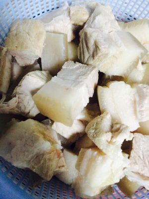煮熟后放冰水里冰一会。为了让肉的口感更加Q弹~