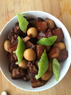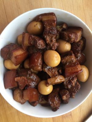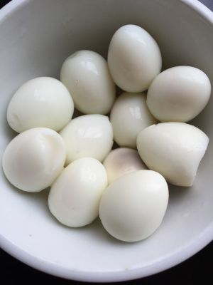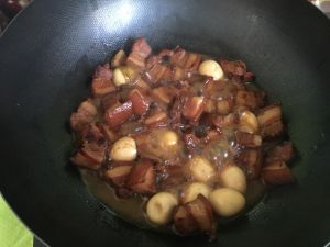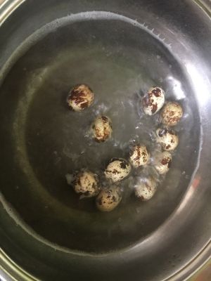 汤汁明显减少的时候,再次放入炒锅中,加入鹌鹑蛋,可以根据口味加入适量的盐,继续炖煮收汁