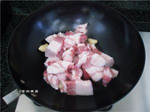 五花肉洗净切块,锅中加少量油将五花肉煸至金黄沥出。