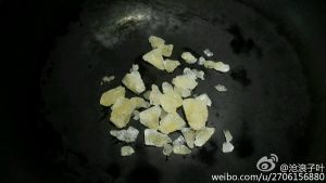 炒锅加热后,放入老冰糖慢慢融化,用中火熬制,保持搅动不能焦化。