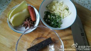 放入肉后中小火快速翻炒上糖色,加入少许料酒快速翻炒,加入葱,姜,生抽,面酱,八角快速翻炒,后把肉放入高压锅中加入没过肉的水和适量的盐。中火15分钟