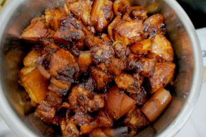 做法:肉块凉水下锅去血沫,放葱姜料酒去腥,开锅5分钟捞出,不要过凉水,锅中放50克花生油,放白糖50克,小火熬成糖色,放肉块进行煸炒,中火炒至肉块上色,水汽蒸干,放米酒,料酒,老抽,腐乳,进行炒制五分钟后,倒入高压锅,放冰糖。不要放水,因为米酒已经放了200克。肉也会出油。