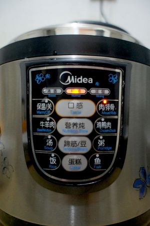 炒制后的香料放入高压锅内,有肉类,标准。大约10分钟。不要开盖,再焖50分钟。