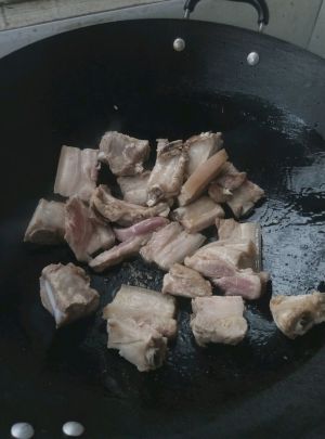 锅内放少许油,把肉沥干水份下油锅翻炒几下。