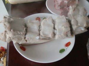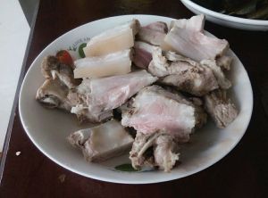 五花肉切小块,加葱姜料酒下水也煮一下。