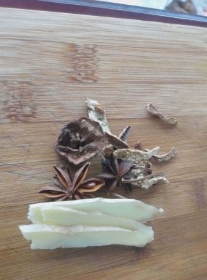 干山楂片,肉蔻,香寇,陈皮,葱,姜,蒜,桂皮,香叶,大料,花椒,茴香,干辣椒,