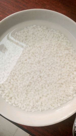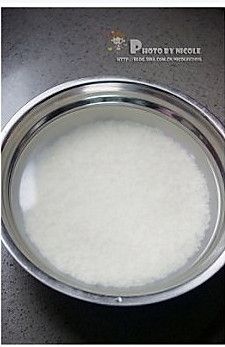 将糯米提前浸泡,我用温水浸泡,半个小时左右即可