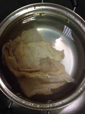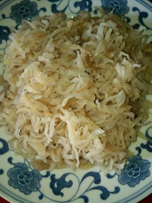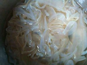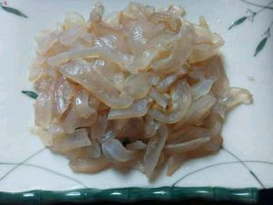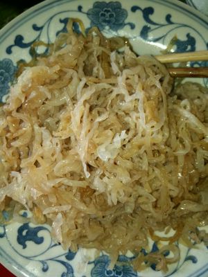 海蜇用水泡半天,期间换水次,再用温水过一遍