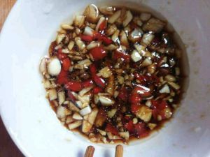 酱汁:所有材料一勺(生抽半勺),加入蒜末即可