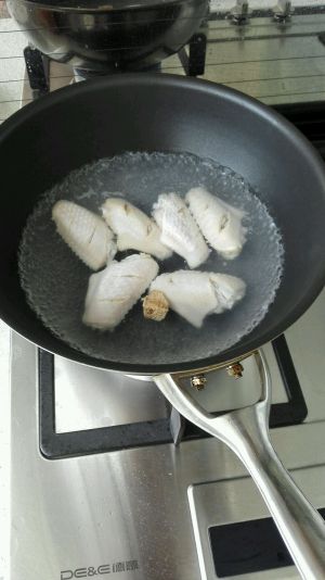 鸡翅放入生姜焯水,漂去白沫,变色即可