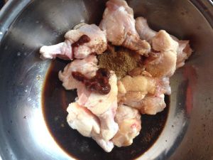 腌制15分钟,调料需要老抽少许,冰糖少许,醋少许,鸡精少许,五香粉少许,蒜,葱,姜