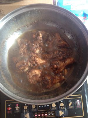 方几片姜,洒酱油少许,倒入可乐,我倒了小半瓶,加盐……加点水煮