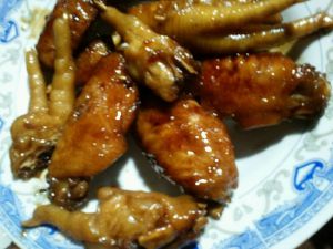 倒入可乐淹没鸡翅,加蒜头姜片慢火焖220分钟左右,改大火收汁几颗