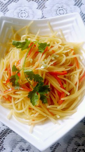 盛盘、酸甜可口的凉拌土豆丝就做好了