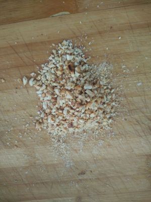 撒上花生碎(我把五香花生米的皮剥掉 用擀面杖擀碎 有点颗粒 好吃) 再滴几滴红油