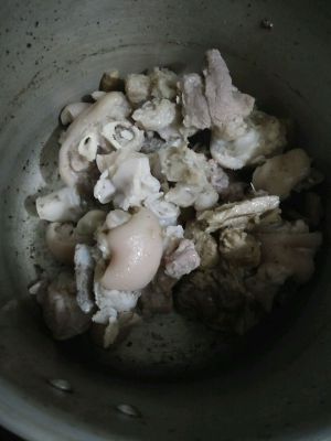 准备好剁成块状的猪蹄,用高压锅稍微压烂一点