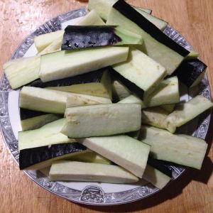 长茄子切成长条块。