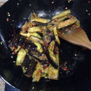 茄子翻炒好后倒入调好的鱼香汁,出锅即可。