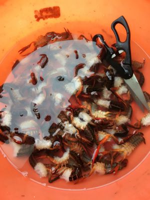 虾去头去尾,(白醋浸泡2-3个小时,消炎杀菌,去腥) 选虾:活跃、钳子大、虾腹部干净,湖虾最好(可看腮部是否干净,判断虾品质)