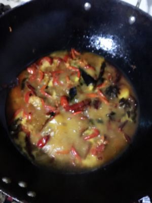 锅里剩下油,放辣椒,葱姜蒜等暴香