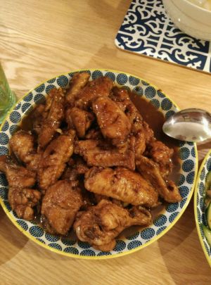 蜜汁挂壁就可以关火了,筷子夹出鸡翅摆盘儿,随心摆,觉得怎么开心就怎么摆,我撒了些白芝麻,好看,吃着也香