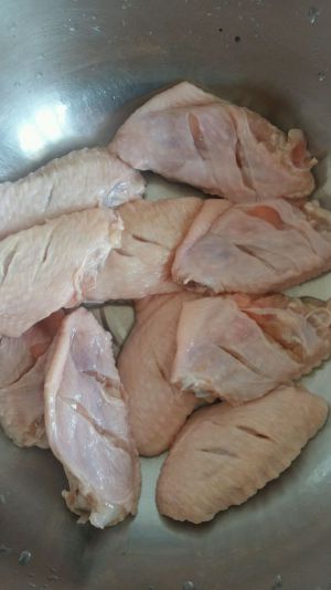 腌制鸡翅,半小时左右,且鸡翅开几道口子