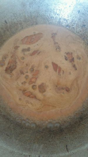 大火让可乐开起来就改小火,放干辣椒、盐调味道。