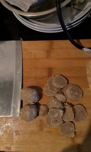 烫面面。。。水开后加入少许食用油,然后把面面放入水中煮到六七分熟。。。这个这个我有借鉴啦,我开始也不晓得怎么自制油面