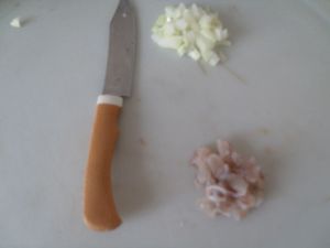 大火热锅,加1勺油,涂在锅上。加入大蒜。