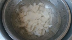 烧水,等水开后下面煮至七八分熟然后捞出到盆中待炒。这个时候最好在盆里放点水,不然待会儿炒的时候会很粘稠。