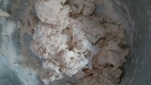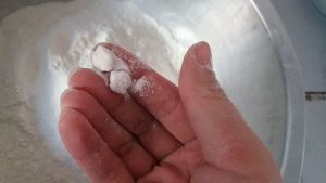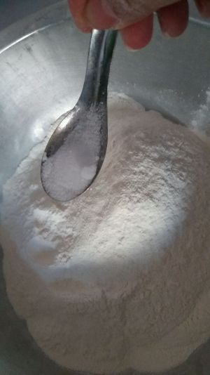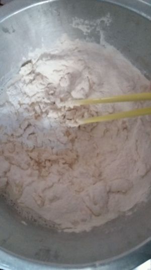 完成,如图看一下面粉的对比色。可以加一些盐,不用太多。因为之后泡水喝的时候可以再加盐。