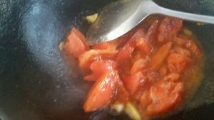 放入切好的西红柿,和一些番茄酱,炒一下盖上锅盖