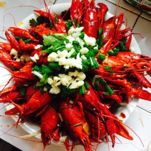 先烧一锅热水,将龙虾焯水然后捞出来沥干水。锅中下油,加入花椒爆香,然后加入蒜末姜末,接着加入郫县豆瓣酱炒出红油